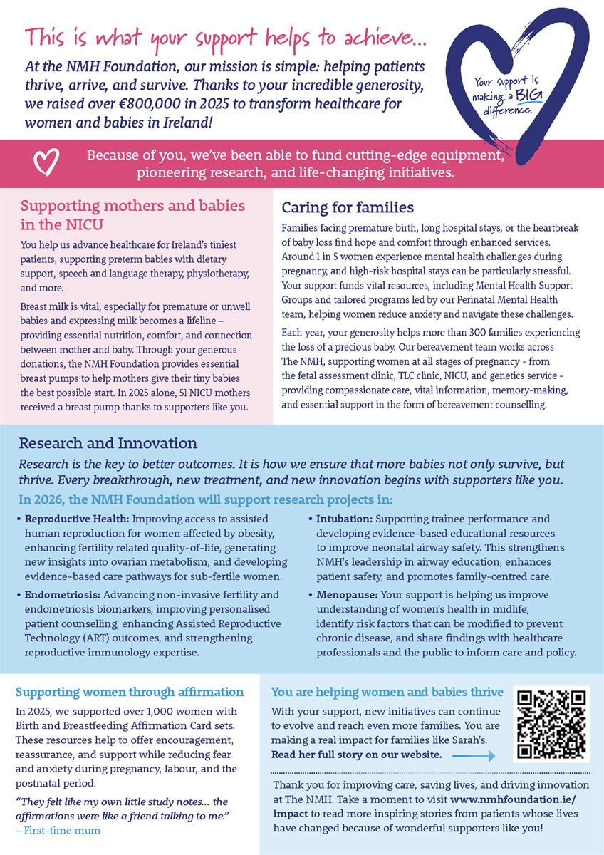 Your support helped us to achieve so much last year. You are making an impact on women and babies at The National Maternity Hospital (NMH), Holles Street.